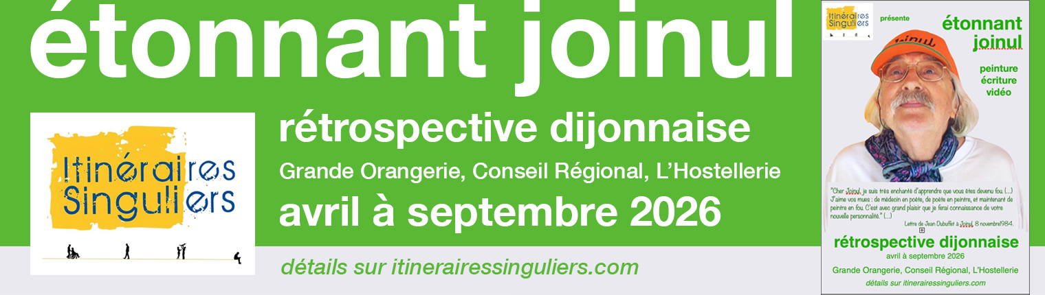 “Cher Joinul, je suis très enchanté d’apprendre que vous êtes devenu fou. Ce fortifie mon envie de le devenir aussi. D’ailleurs je me sens sur le chemin. J’aime vos mues: de médecin en poète, de poète en peintre, et maintenant de peintre en fou. C’est avec grand plaisir que je ferai connaissance de votre nouvelle personnalité.” […] Lettre de Jean Dubuffet à Joinul, 8 novembre 1984.